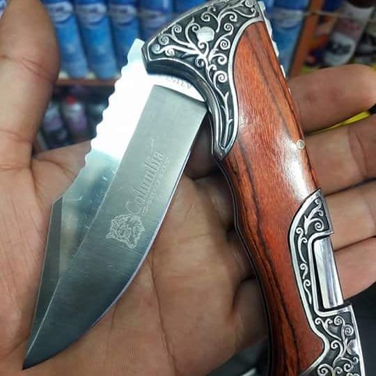 Be the first to review “Columbia A3157 lock-back folding knife with black-brown stone inlay handle”